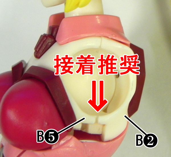 接合が緩まないようにパーツB5とパーツB2との接着を推奨します。