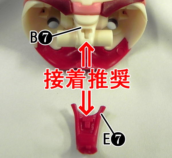 誤って外れない様にE7パーツとB7パーツとの接着を推奨します。